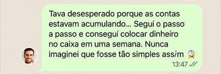 Se você aplicar o que está no eBook, é possível começar a gerar caixa nos próximos 7 dias (ou até antes). O foco aqui é em ações práticas e imediatas, pra tirar o seu negócio da inércia o mais rápido possível.