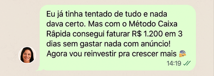 Não! O grande diferencial do Método Caixa Rápida é que ele foi criado justamente pra quem não quer ou não pode gastar com anúncios agora. Todas as estratégias são pensadas pra usar clientes atuais, contatos que você já tem e ações de venda direta.